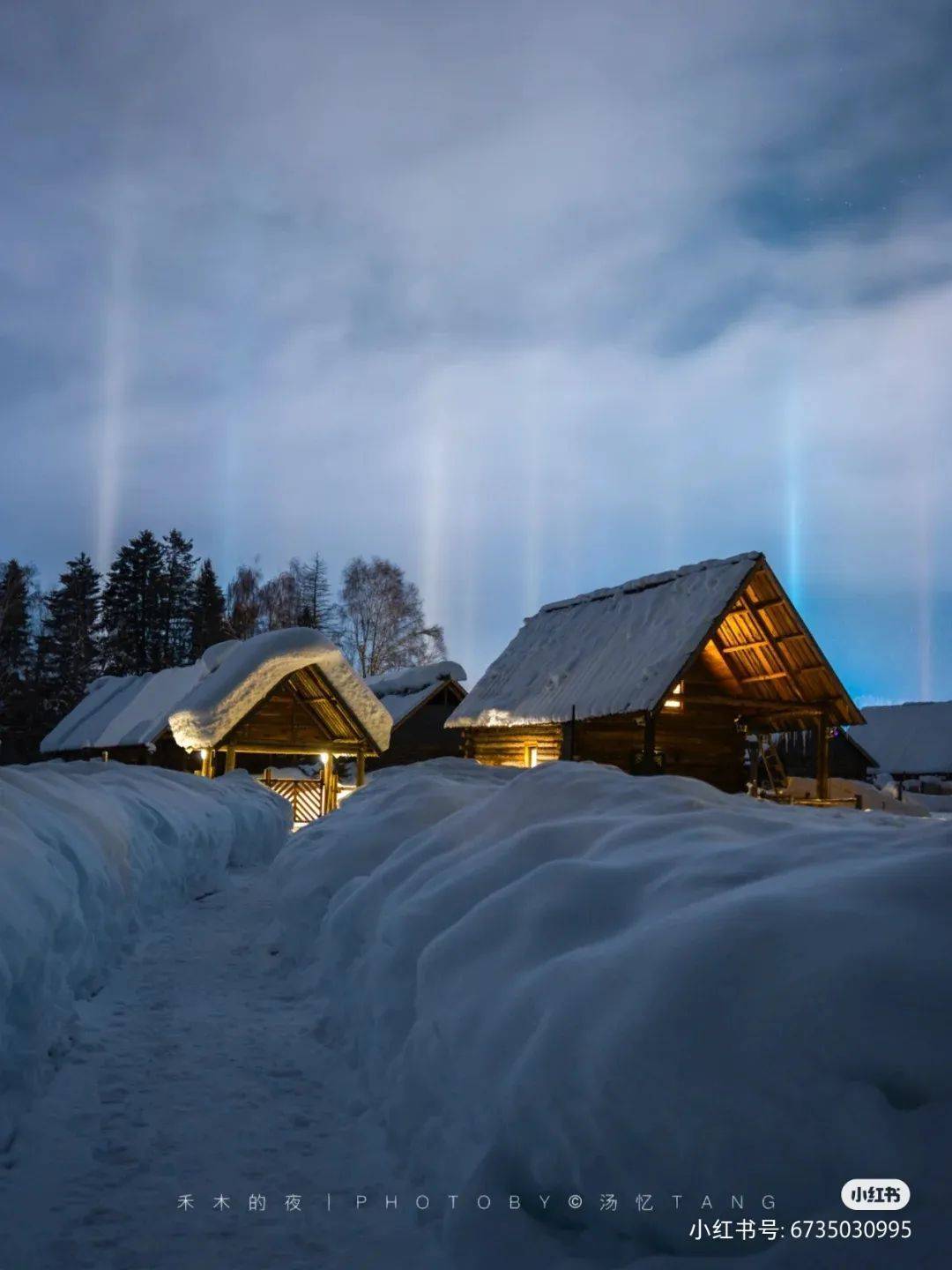 一道道寒夜光柱,像是《流浪地球》中的行星发动机,直通寒夜天空。