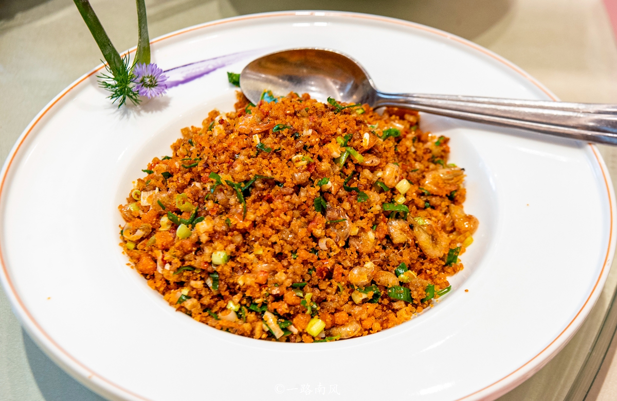 让我们印象深刻的还有一个叫渣广椒藕粒小虾的当地名菜,外表看起来非常鲜艳,印象中在别的地方没有看到过,据说制作程序有点复杂。
