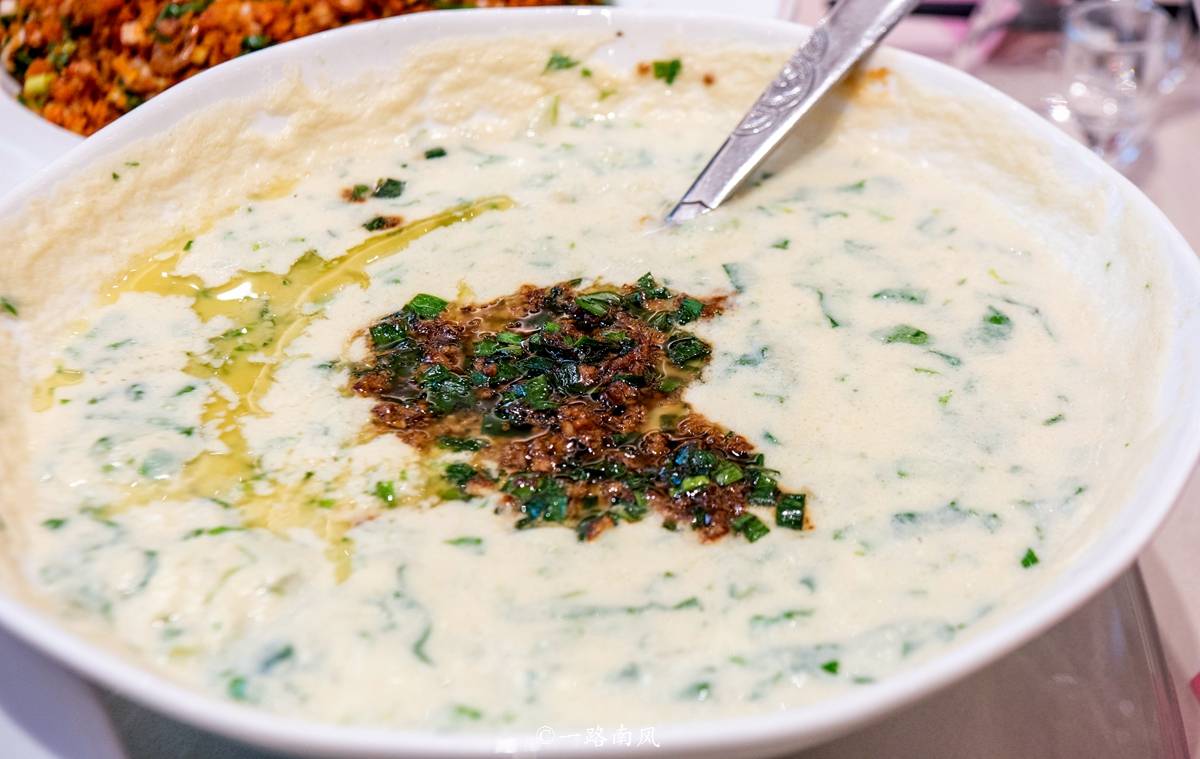 在宴席中,我们还看到一道非常特别的名菜-土家懒豆腐,这个菜的外表看起来就像刚刚调好的生面浆,上面洒了一些配菜和调料,口感既像豆浆,又像豆花,还有点像豆腐。
