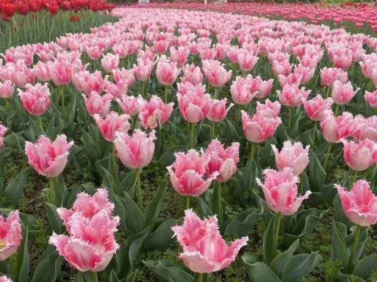 园内1200平方米的郁金香花海也吸引了不少游客。五彩斑斓的郁金香朵朵饱满,与风车、奶牛造景相映成趣,形成了独具特色的“小荷兰”景观。“这里的郁金香美得像油画,布局得也很好,随手一拍就是大片。”游客于伟说。
