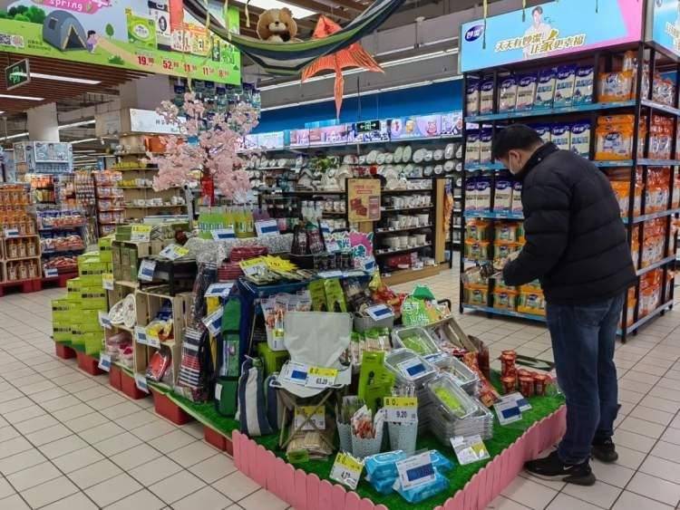 在城中路世纪联华超市,春季新品摆放在显眼位置。“最近的天气特别适合外出踏青,我来买野餐垫、饮料和食品,这些都能很快地在相连的货架上找到,非常方便。”市民夏先生说。