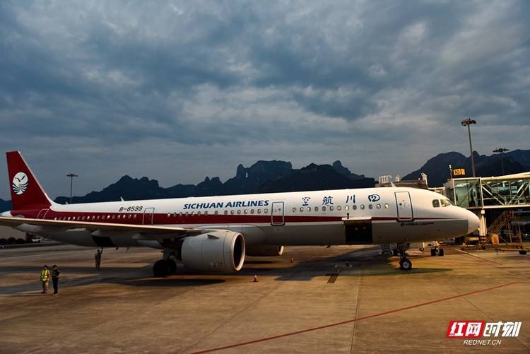 飞机降落在张家界荷花国际机场。