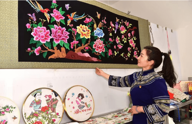 丁兰英是一位从南华县大山里走出的绣娘,8岁时,丁兰英开始跟着母亲学刺绣,16岁时便开始摆地摊卖绣品。2014年,外出务工返乡的丁兰英注册成立了南华七彩彝州工艺品刺绣加工厂,开始了她的创业之路,并用刺绣这门彝族传统技艺带领群众脱贫致富。
