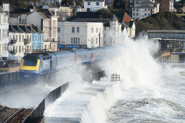 这里修建的火车站名为道利什火车站,车站与铁路线均建在海墙上,道利什车站在1846年由南德文郡铁路公司开放。由于靠近海边,车站与铁路经常遭受风暴的摧残,这时,火车从呼啸而起的巨大海浪中穿过的情景,就如同从海里“钻” 出来一般,十分惊险。