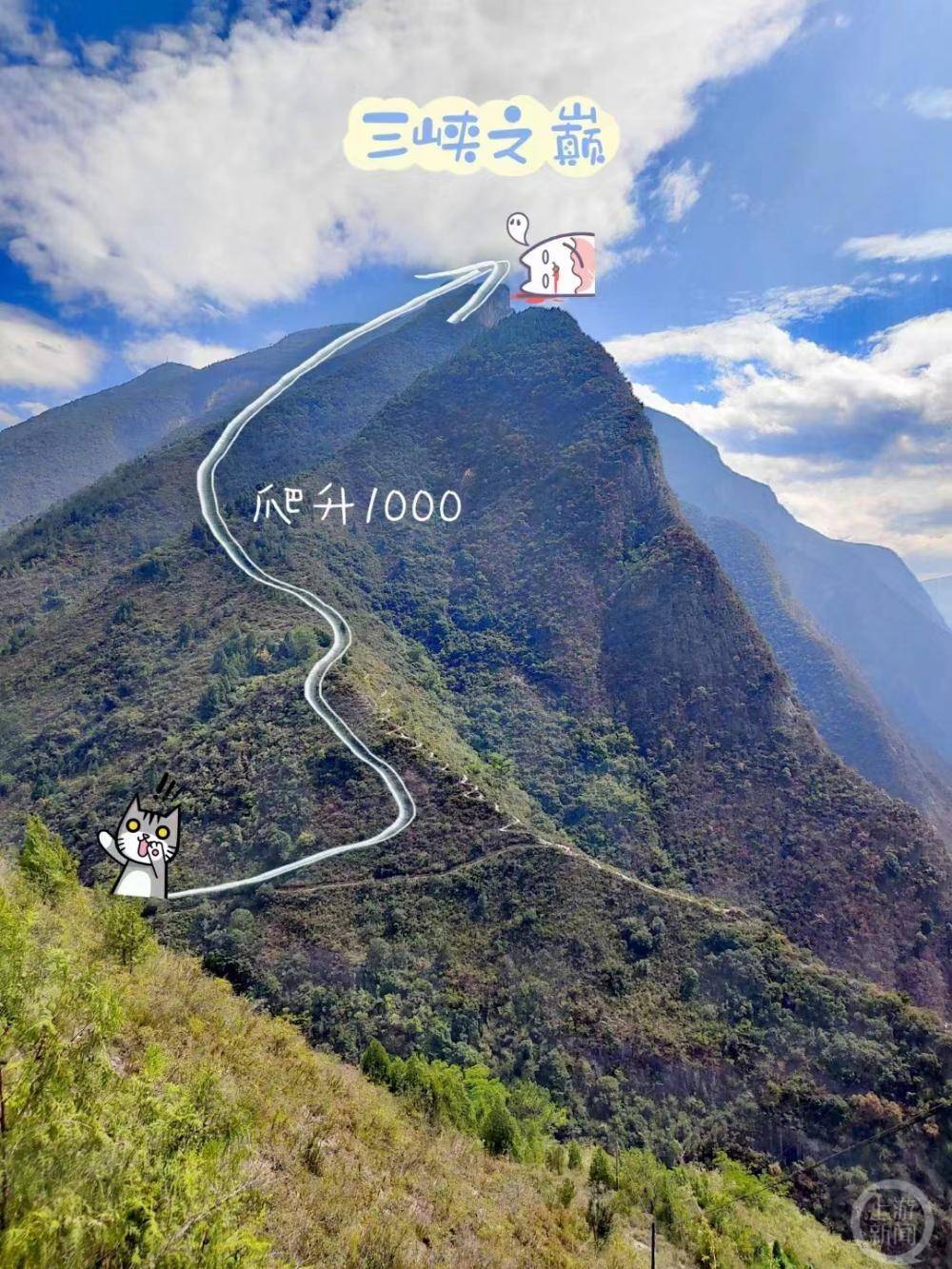 ▲三峡之巅的登山步道爬升垂直高度超过1000米。
