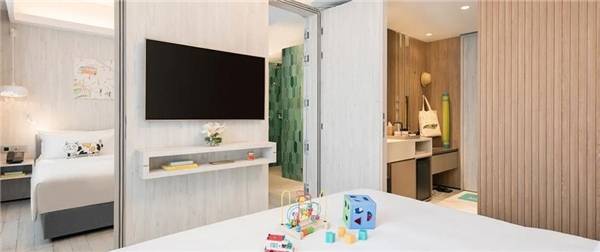 适合家庭入住的酒店正着手改造酒店大堂,或在某个指定区域为孩子们设置安全的游玩设施,让他们在家长办理入住手续时开心玩耍。贴心的酒店设计元素包括提供主题客房,设置室内小厨房,安装足够放置婴儿车的宽敞升降梯,以及为父母提供能够照顾孩子的舒适休息区。地处新加坡克拉码头的瑞士茂昌阁酒店在父母房间旁设置多彩有趣的儿童房,营造出一种舒适与趣味兼备的氛围。
