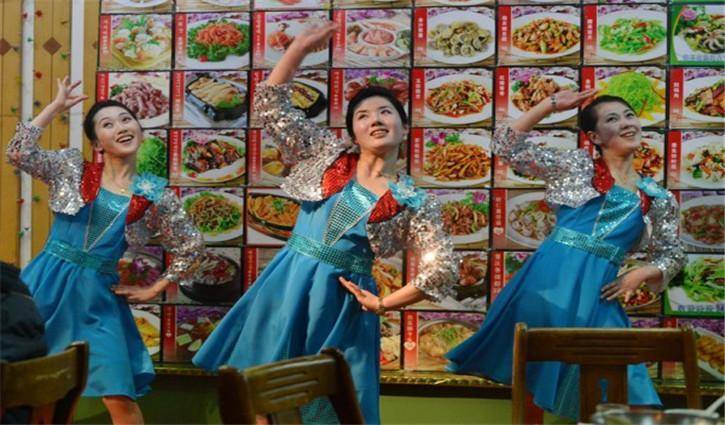 就算导游表面上这么说,我们也想看看导游说的是不是真的。有一次我们跟着几个老外溜进了一家国营饭店。我们看到里面的家具和我国70、80年代的向阳红宾馆很像。里面服务员不多。外地人在里面吃饭不需要不同的饭票,但是需要真金白银。看到一个老外直接把菜名报给服务员。过了七八分钟,第一道菜上来了,然后就看到几个老外在吃。