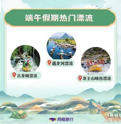 同程旅行数据显示,端午假期中国游客最关注各类避暑清凉的旅游玩法。6月以来“漂流”相关产品搜索热度上涨272%,随着国内各地气温普遍升高,众多游客组团来到城市周边,体验漂流这一亲水玩法,在山水间享受夏日的清凉。截至目前,端午期间国内最热门的漂流项目主要有遇龙河漂流、古龙峡漂流和龙王山峡谷漂流。