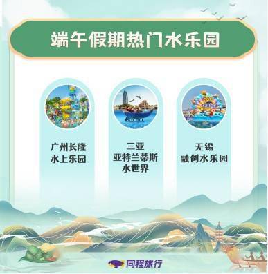各地陆续开放的室内外水乐园成为亲子家庭夏季遛娃的首选玩法,6月以来同程旅行水乐园相关产品搜索热度涨幅超过150%。广州长隆水上乐园、三亚亚特兰蒂斯水世界和无锡融创水乐园是端午假期最热门的国内水上乐园类景区。同程旅行也推出了水世界门票预售活动,搜罗国内热门水世界门票,价格低至1折起。