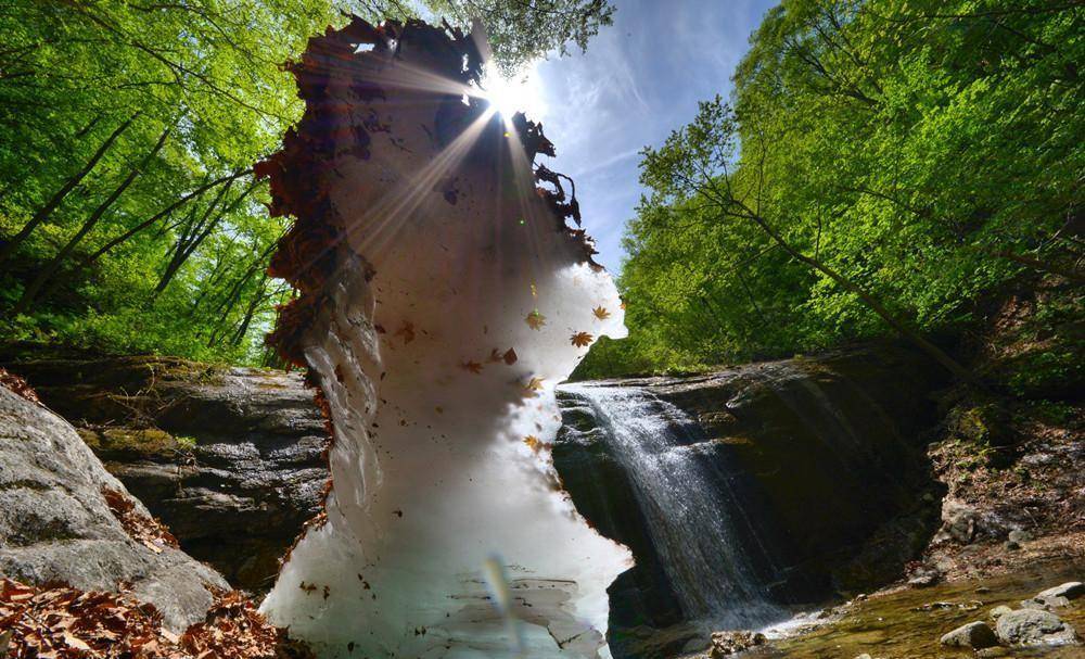 6月3日,记者在本溪大冰沟国家森林公园内看到,不少游客正在冰瀑前拍照打卡。据了解,公园内的这处木兰冰谷瀑布群每年10月末结冰,次年7月末才会完全融化。“夏赏冰景”是景区夏季一大卖点,每年暑期都会吸引大批游客来到这里。据工作人员介绍,公园森林覆盖率97%,公园内最热月份为7月,月平均温度也只有20℃~23℃,“现在大冰沟的气温比外面的温度低七八摄氏度,即使在这里翻山越岭,也不会热得难受。”