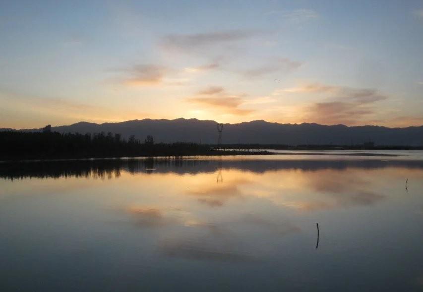 得知我没到过银川,他热情地开车拉着我,游览阅湖、绿博园等,拍摄照片。夕阳下的阅湖,绿树葱葱环绕,鲜花开得正盛,湖面荡起层层波澜,西有贺兰山映衬,实在美极了。