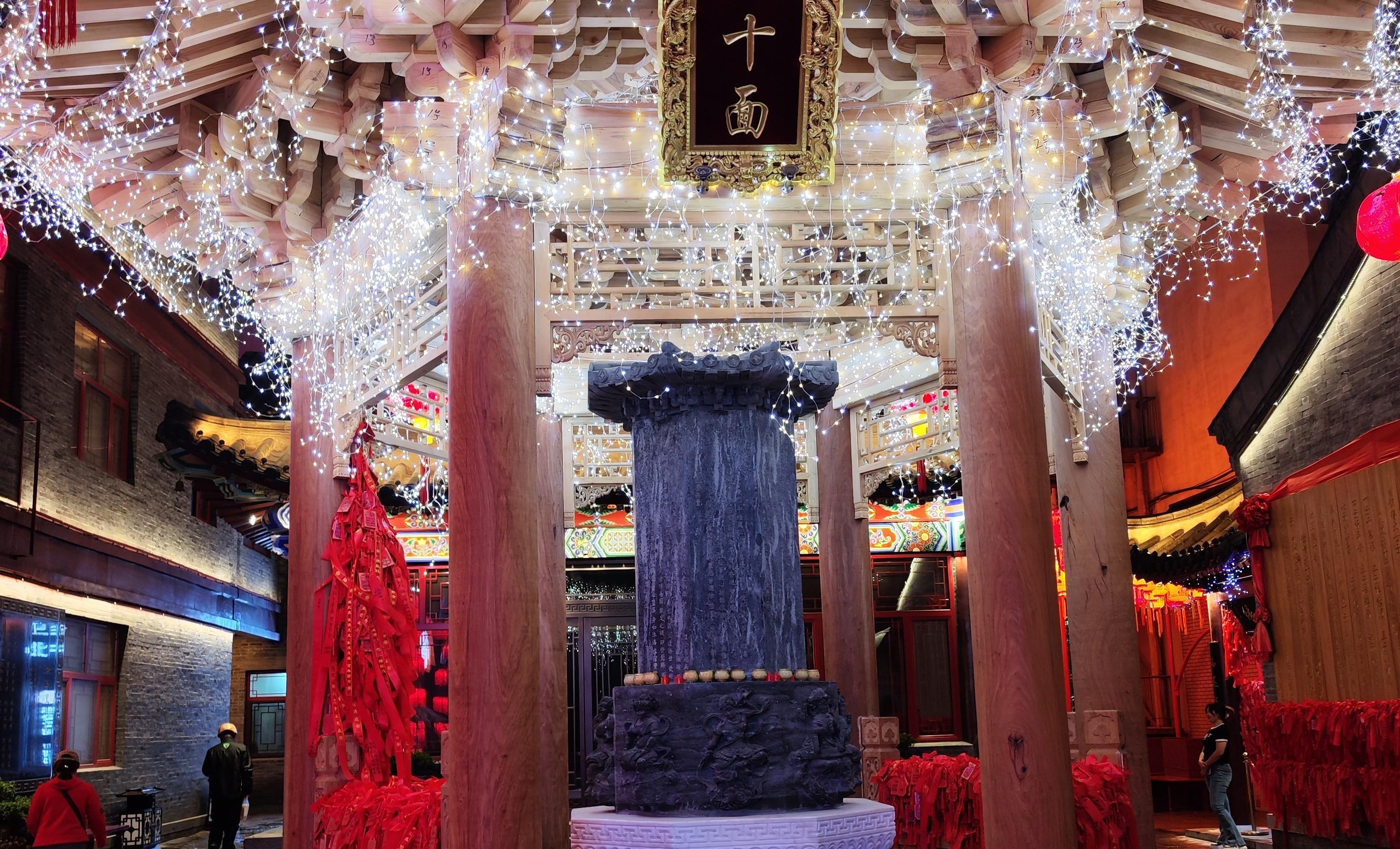 比如在头条胡同里就有个中央里,这里有一座石经幢,俗称十面石,因幢身八面,再加天盖和盖座各一面所以得名。这座经幢历经千年早已是风尘仆仆,人们将其移至此地,并盖碑亭加以保护,让其继续为民祈愿。