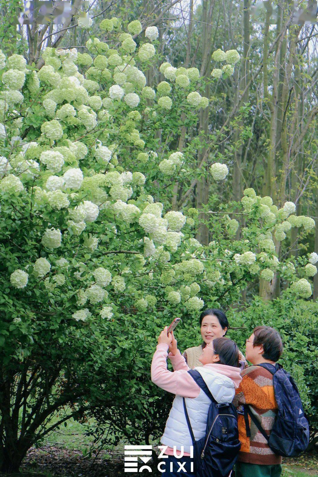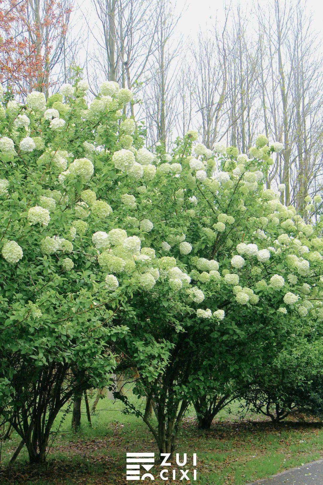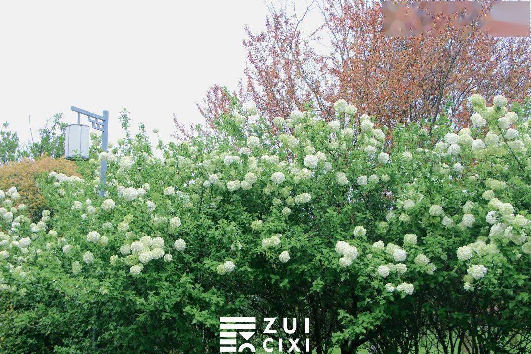 不必跑远,慈溪也有超出片的木绣球花林! 和往年一样,4月是木绣球的最佳花期, 从森林公园北门进入一直往东走,过了石桥再走一段就到了木绣球花林。