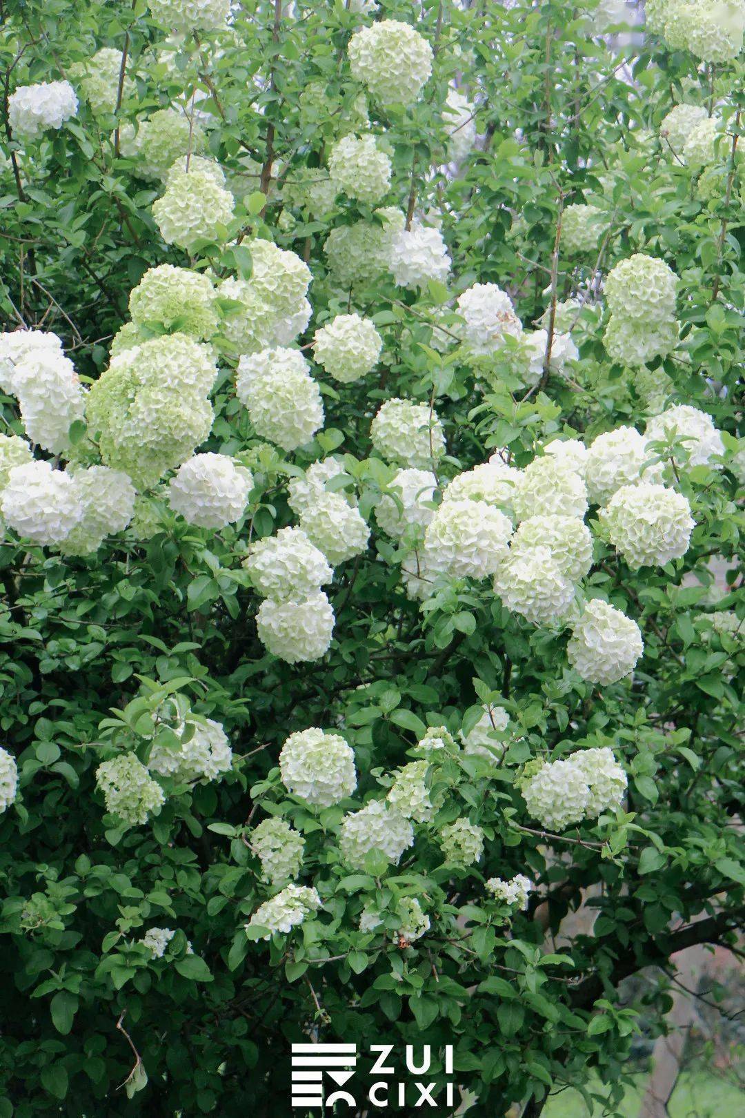 “满树玲珑雪未干。”在这里,木绣球长得 格外茂盛,人在树下需要抬头仰望。