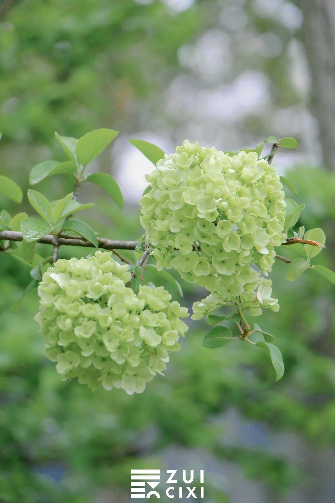 还有这种木绣球的青绿色,实物更接近 抹茶色,区别于偏深的树叶,嫩嫩的清爽感,伸出枝头来,温柔又优雅。