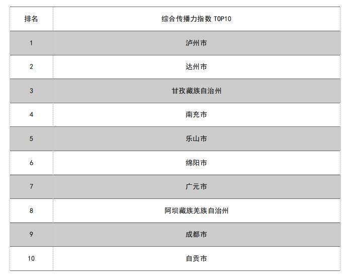 表1 2023年4月“安逸四川新媒体传播力指数——四川市(州)文旅榜单”TOP10一览表