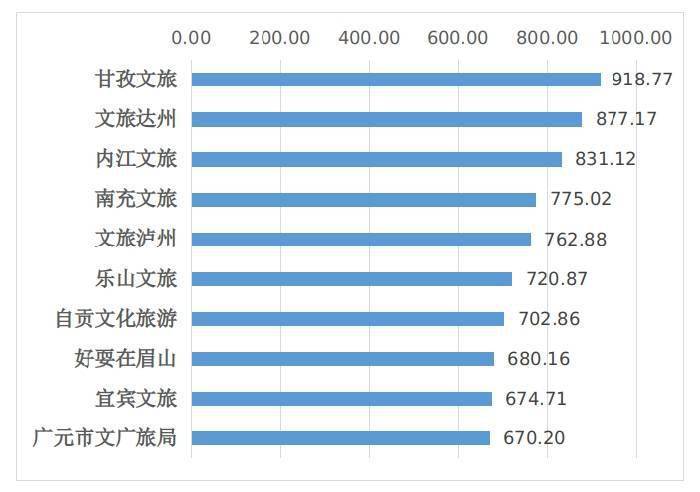 文旅头条号传播指数指标计算综合考量发文量、阅读量、图文收藏量、图文分享量、图文评论量、微头条点赞量、微头条评论量、微头条收藏量、直播评论量、涨粉量等。从2023年4月四川省市(州)文化和旅游行政部门头条号的表现看,前十位排名为:文旅泸州、南充文旅、乐山文广旅游局、达州文旅、绵阳旅游、好玩甘孜、宜宾文旅、广元市文广旅局 、阿坝州旅游、雅安文化体育和旅游局。