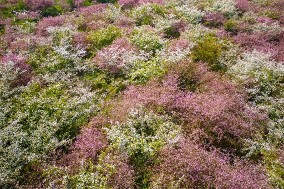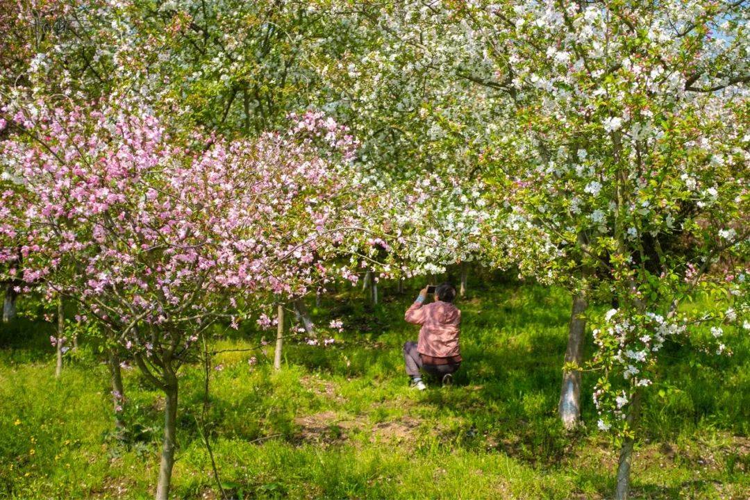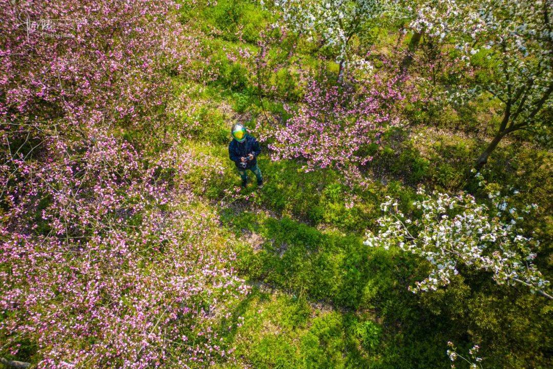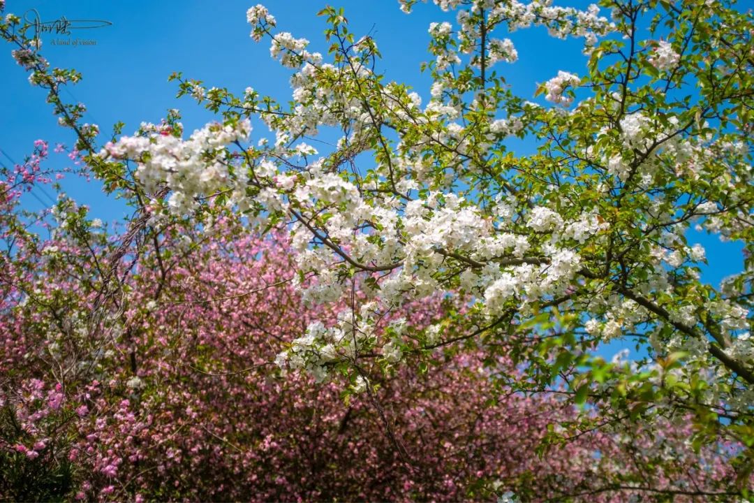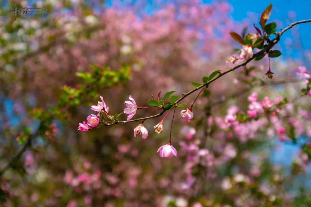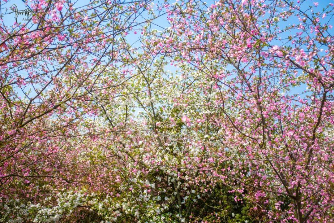稍作观察,这片花海以红、白两色的海棠树为主,种植得十分紧密,正值花期的时候,看起来就格外漂亮。又有小径直通或者从路边可以直接跳到树下,如果带足装备,露营或者野餐都非常合适。难怪在路边停下的小车越来越多,显然已经有不少“路人”开始呼朋唤友过来玩耍。(图文作者:阿陆,喜欢这篇文章的朋友可以多多留言,欢迎点赞、关注和转发。)
