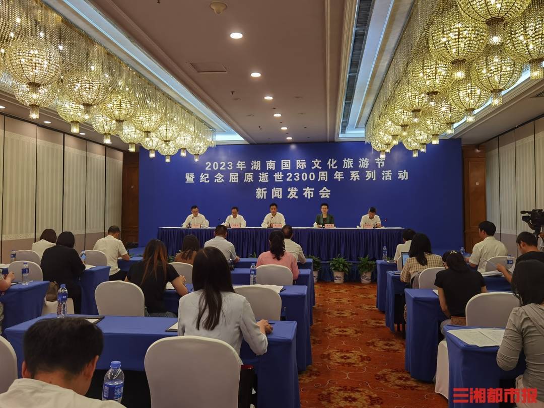 华声在线6月8日讯(全媒体记者 丁鹏志)体验一场文化盛宴,参与一次体育赛事,欣赏一幅山水画卷,感受一种舌尖诱惑……6月8日,2023年湖南国际文化旅游节暨纪念屈原逝世2300周年系列活动,在长沙举行新闻发布会。记者从会上获悉,本次节会将于6月20日至22日在岳阳汨罗举行。