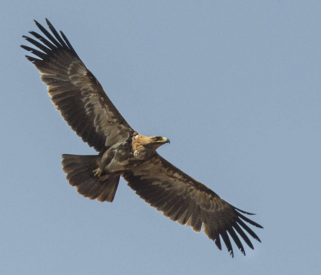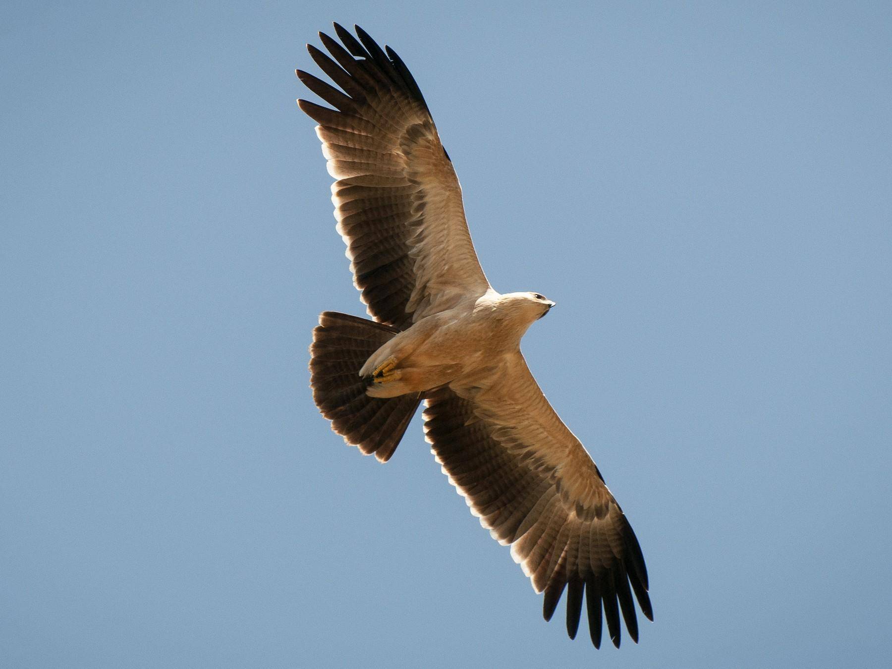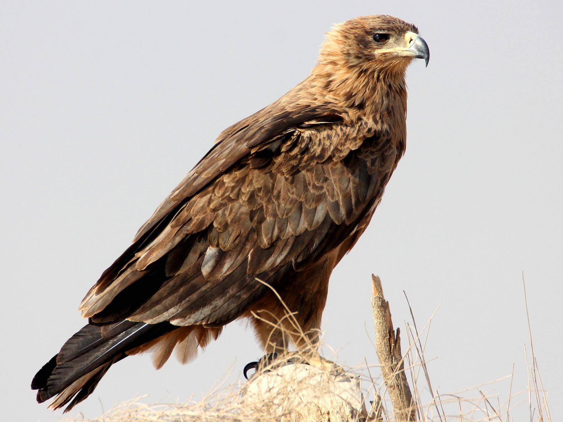 茶色雕,大型鹰科隼形目物种。体型强壮,喙和爪坚实,适于撕裂猎物。翅膀宽圆,翱翔飞行,飞羽浅棕色,与深色覆羽形成鲜明对比。分布于非洲热带草原和半沙漠地带,是埃及的国鸟。食肉性或食腐性,体羽色变化大。雌鸟较雄鸟大,成鸟眼为棕黄色,亚成体眼为黑色,翅膀后缘有白色窄带。