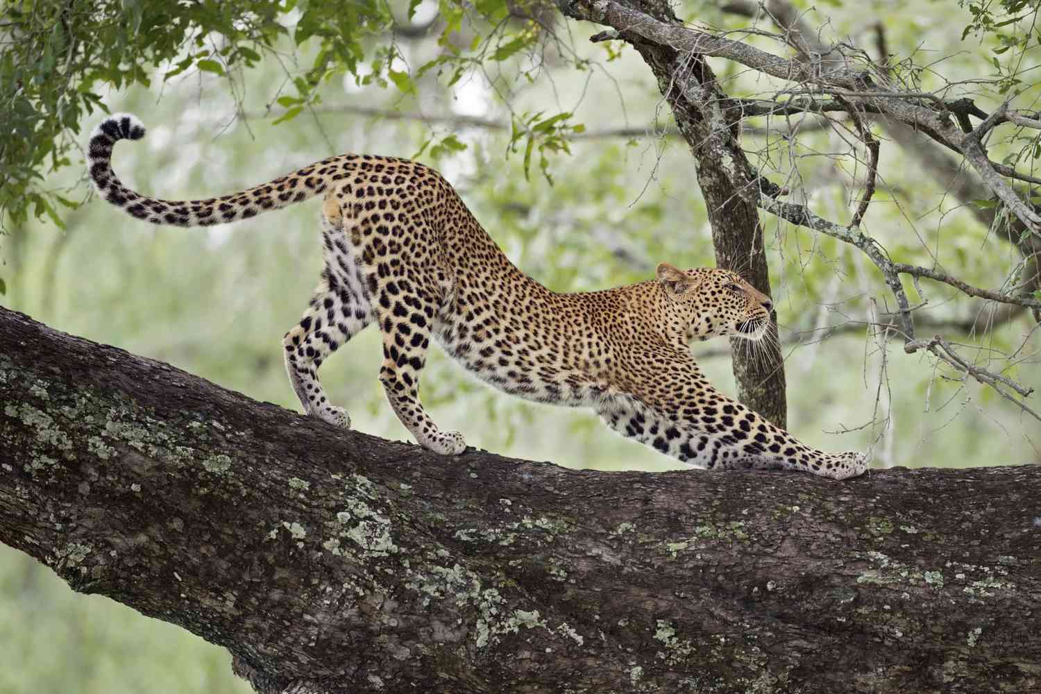 非洲豹是豹的指名亚种,体重40-90千克,速度可达70km/h。它们肌肉发达,头小尾长,斑点形成圆形或椭圆形梅花状图案。主要生活于森林、灌丛、湿地和荒漠,喜欢独居并夜间活动。捕食有蹄类、猴、兔、鼠、鸟和鱼,食物匮乏时也会在夜晚潜入村屯盗食家禽家畜。分布于非洲,会守卫固定领域,雄性领域较大。