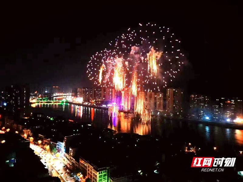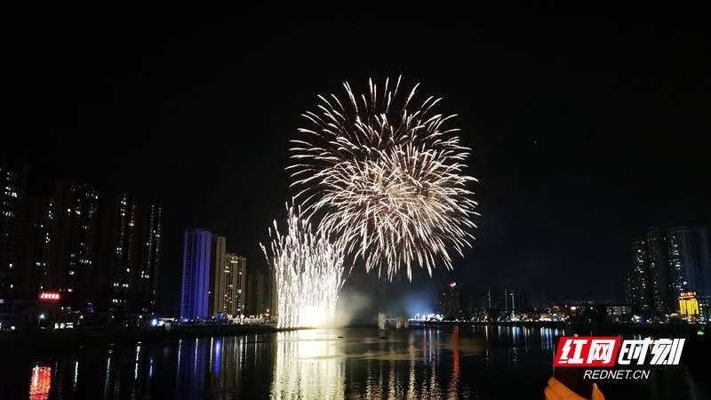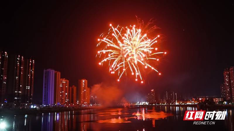 红网时刻新闻4月2日讯(记者 戴瑾昕 通讯员 陈斌)水碧波映花红,烟花绚烂绽长空。4月1日晚,隆回县城赧水河两岸热闹非凡,伴随着烟花的响声和市民的欢呼声,一束束焰火在空中绽放,一道道亮光划过天际,火树银花铺满隆回夜空。