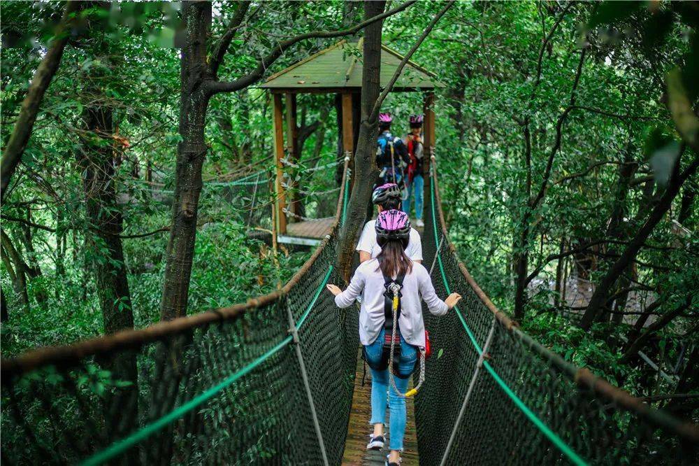 叠翠溪景区内有一个游玩项目叫丛林冒险家,分为少年探险、无限趣味、人猿泰山、全能战士四条线路。在这里,你可以横穿国家森林公园腹地,吸收着纯净的负氧离子,伴随着欢声笑语,尽情释放压力。