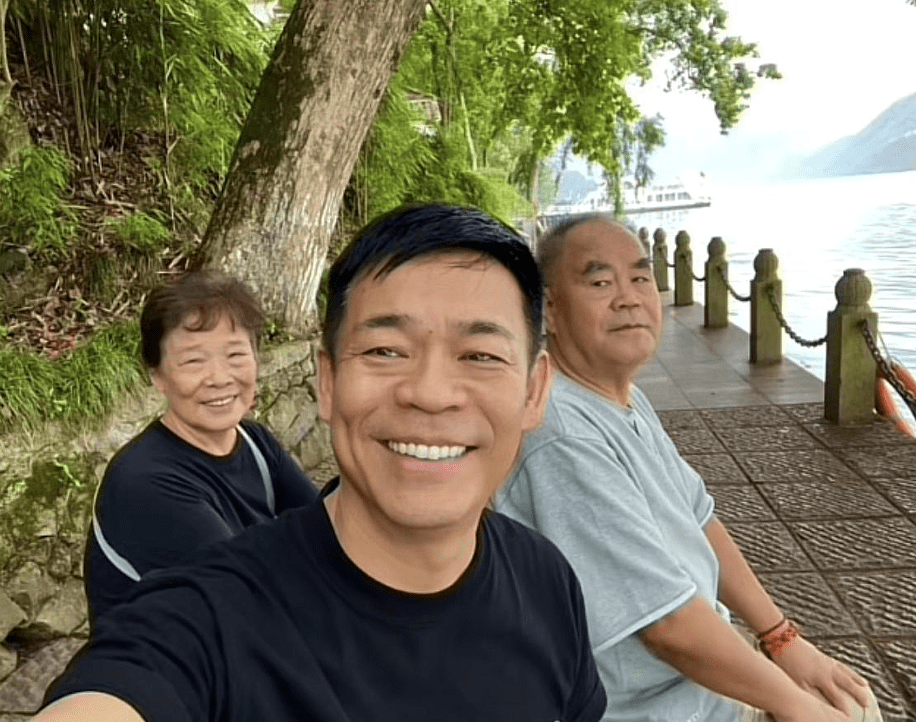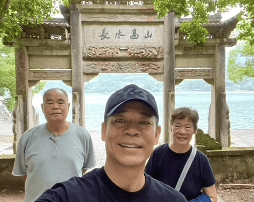 55岁孙浩带父母杭州旅游