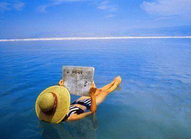 死海最吸引人的地方还是它那温暖、抚慰、含盐量很高的海水。这里的水的含盐量比常规的海水高10倍,而且富含镁、钠、钾、溴等矿物质。当人们谈起死海的时候,有这样的一种说法:死海是大地心窝里的一汪泪水。人们来这里旅游,不仅可以躺在水面,还可以在岸边向身上摸着黑泥,这里就是死海。