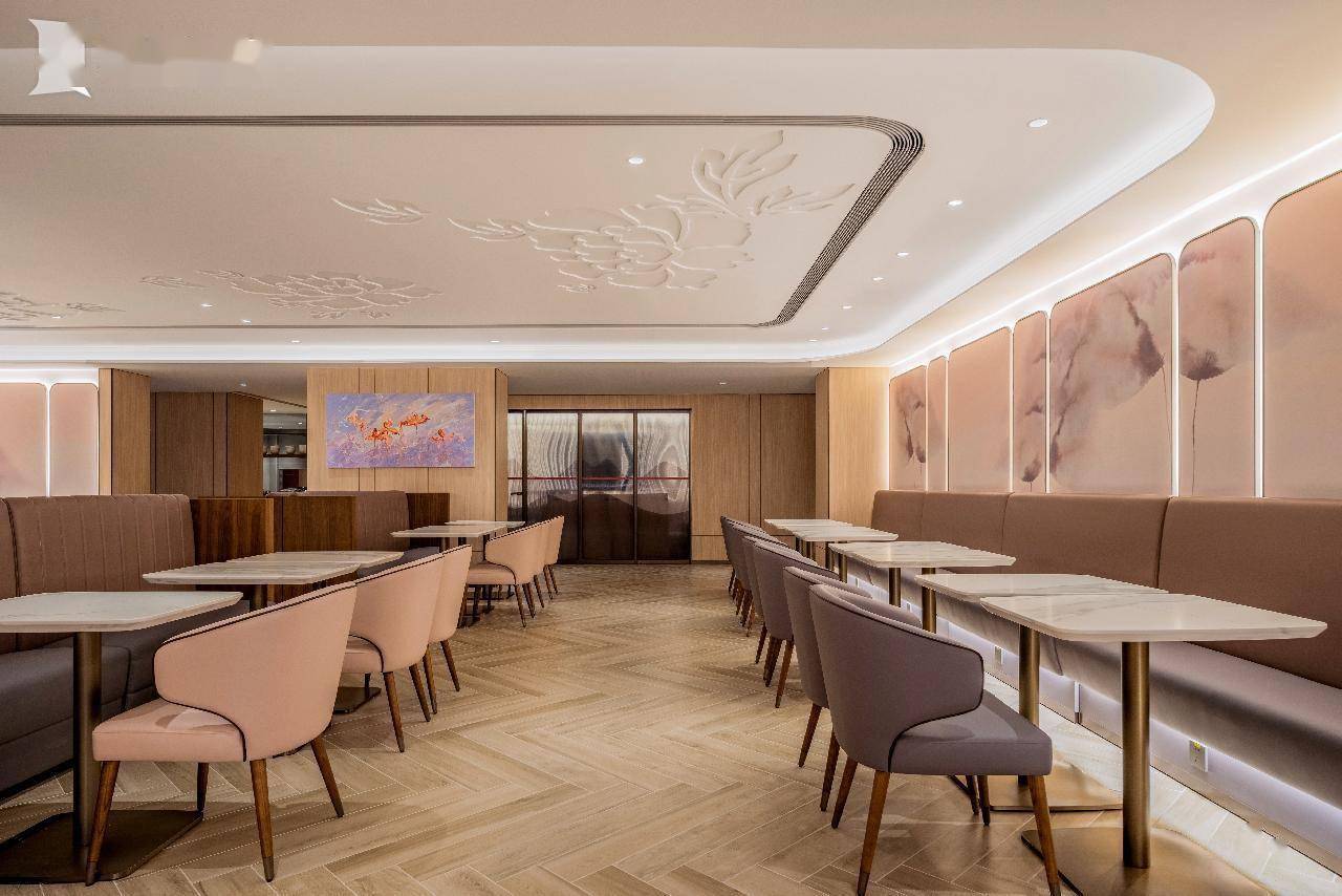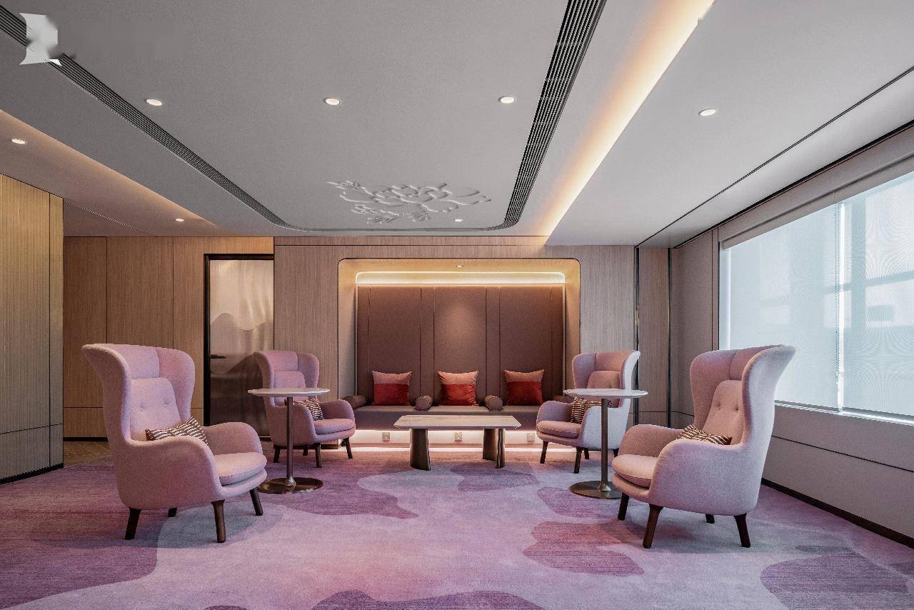 在"似锦"贵宾室的空间设计上,由香港团队陈德坚设计事务所操刀,整体风格贯彻了吉祥航空"梦旅生花"品牌服务理念,以低饱和度的粉紫、淡棕色系为主色调,与现有波音787梦想飞机及A320neo系列机队的莫兰迪色系客舱相呼应,辅以遍布各处的"繁花似锦"牡丹元素,展现精致大气的新中式格调,实现"梦旅生花"服务理念由空中延伸至地面的统一呈现。