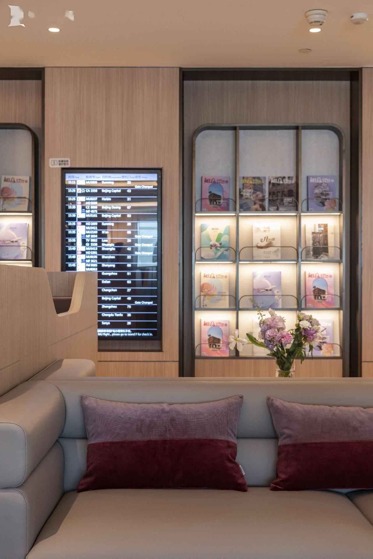 在功能分区上,分别设有独立的用餐区域、办公区域及休憩区域,以满足旅客的不同需求且避免相互干扰。除提供冷热餐饮服务之外,"似锦"贵宾室还设有酒吧区,为旅客提供酒精饮料;设有儿童天地专区及母婴室,为携小朋友出行的家庭旅客提供专属儿童游乐设施及私密空间。贵宾室内还配备独立浴室,旅客可在登机前使用淋浴设施,在出发前让身心焕然一新。