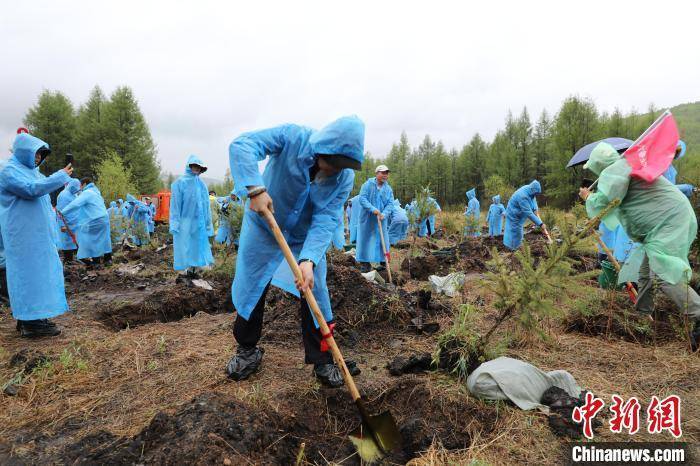进入夏季后,内蒙古大兴安岭常常会遇到淅淅沥沥的小雨,虽然植树活动是在雨中进行,但却丝毫不影响大家的热情。