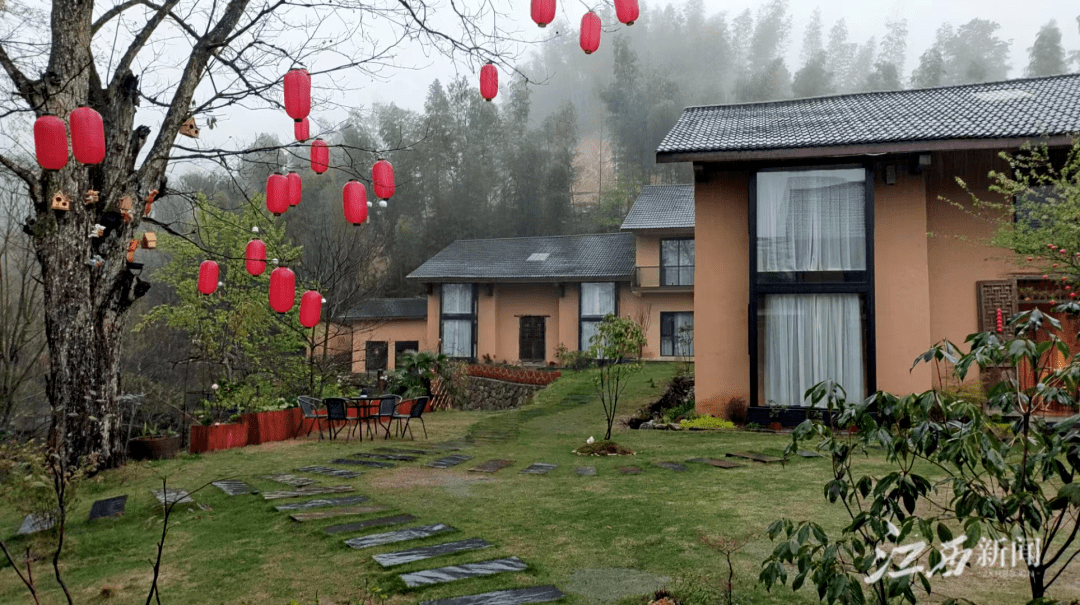 在萍乡武功山有户庭院,院里的红豆杉和板栗树躯干挺直,曲折的小路通向精心设计的老房屋,干净明亮的田园系民宿散发着自由的味道。