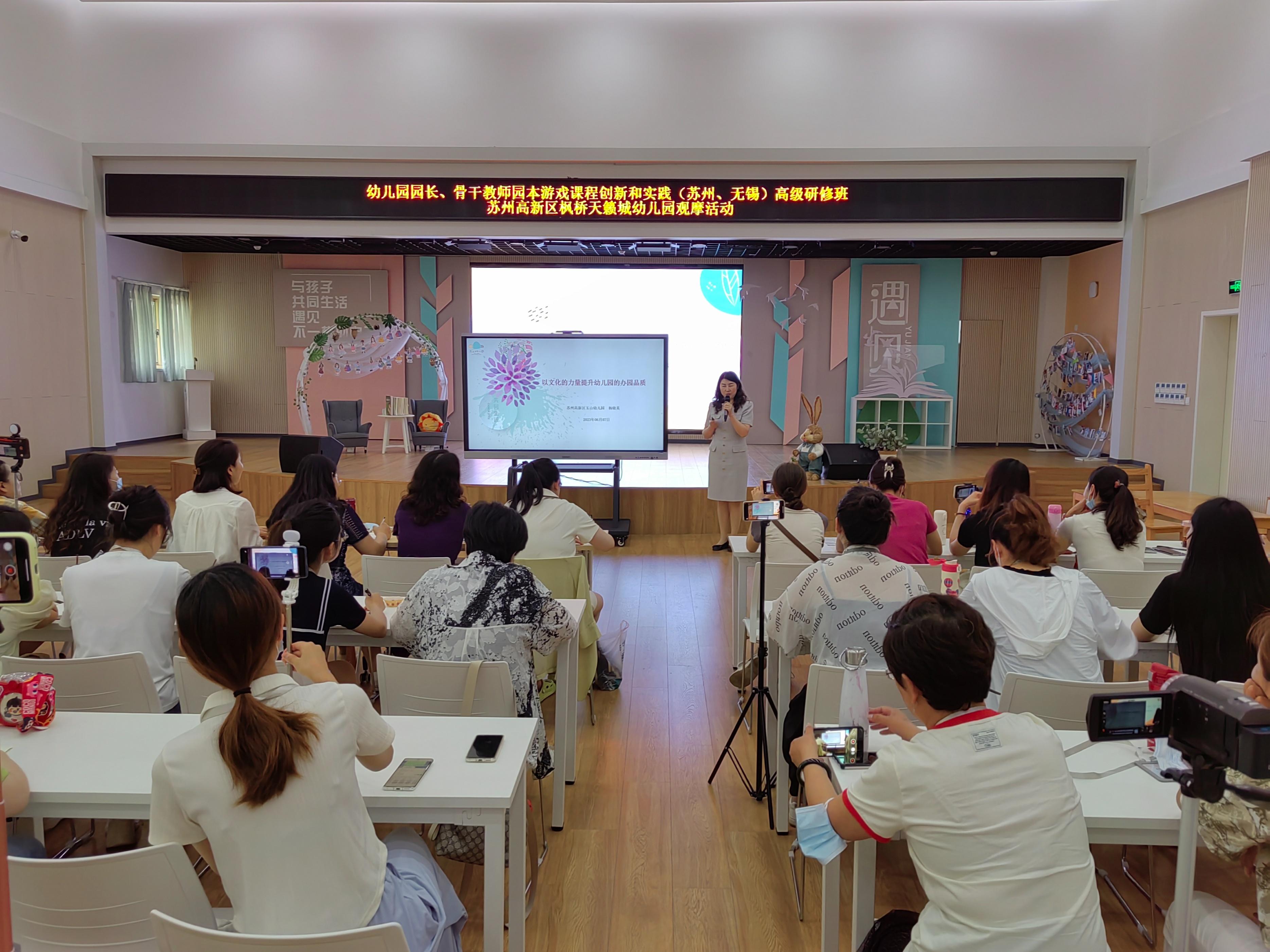 此次培训班紧紧围绕前瞻性教科研理论和幼儿园园本游戏创新课程和实操方法,深入江苏省无锡、苏州两地五所全国知名幼儿园,在观摩、互动、交流中进行智慧碰撞;邀请了6位园长和专家进行了专题讲座,让大家在思考、沉淀、反思中更加坚定了打造高品质课程游戏化道路的信念。
