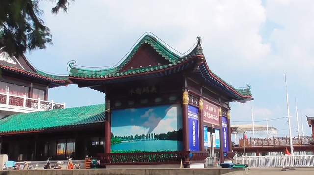 不过,无论从哪条线路出发,预约买票和使用年卡的方式不变。像小编前不久体验的一次游船,从落霞水榭码头出发,且因为是工作日,游客相对较少。步行穿过海洋乐园、冰雪世界到水岸边的码头,工作人员检票进入,看到湖岸边的生态面貌,比很多年前的状态显得更加苍翠。虽然是初夏时节,但水边的环境较为清凉,湖面的风吹来,带着阵阵鱼腥味,随着栏杆放开,游客慢悠悠上前,朝着古朴的建筑走去,而那栏杆外,一艘艘游船早已蓄势待发。