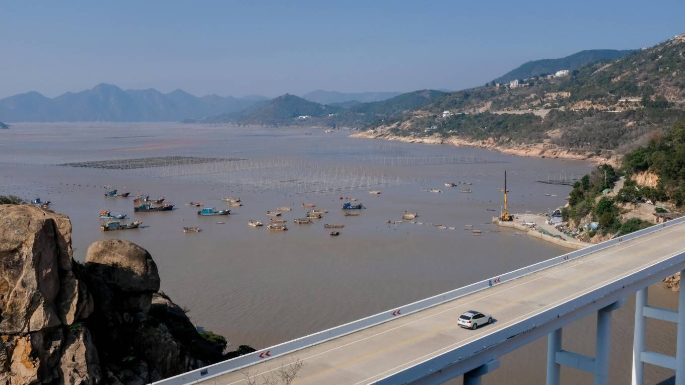东壁大桥是拍摄滩涂很出名的点,一座横跨滩涂的大桥上俯视滩涂时,远处的帆船、落潮裸露的滩涂以及在滩涂上嬉戏的游人,构成一幅如梦如幻的画卷。