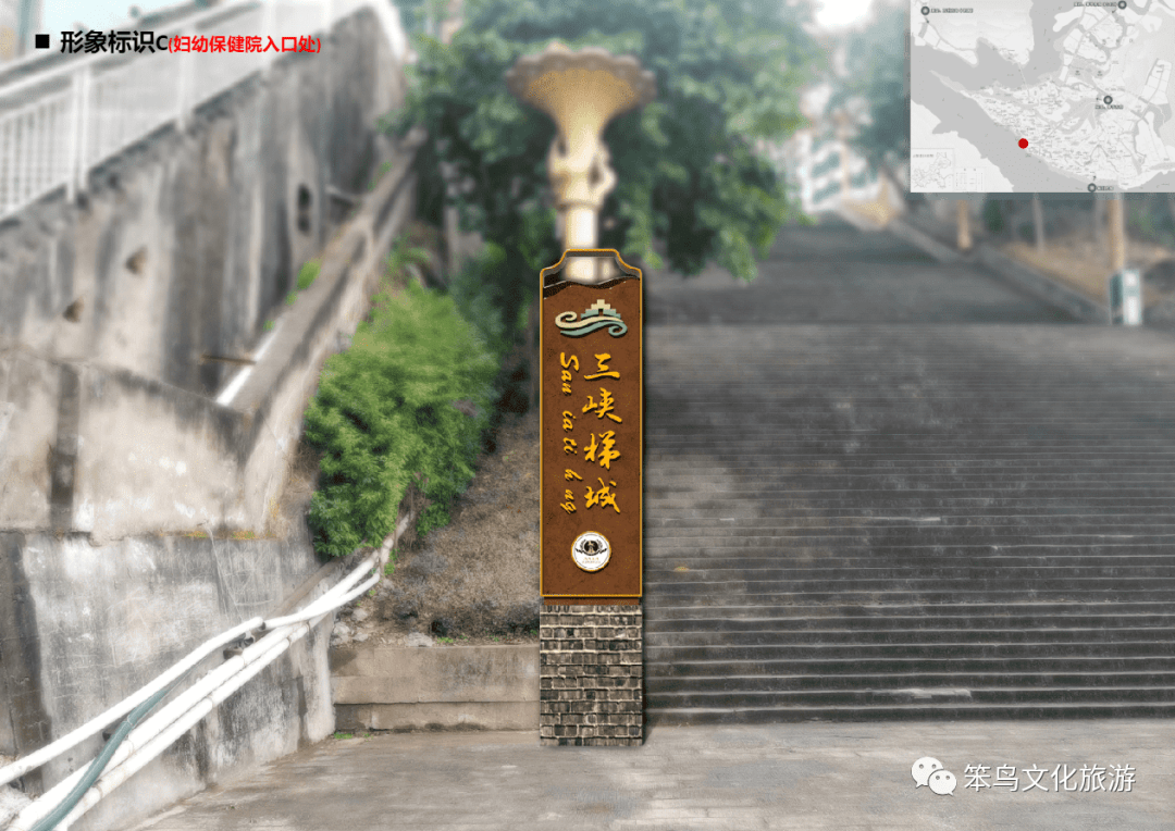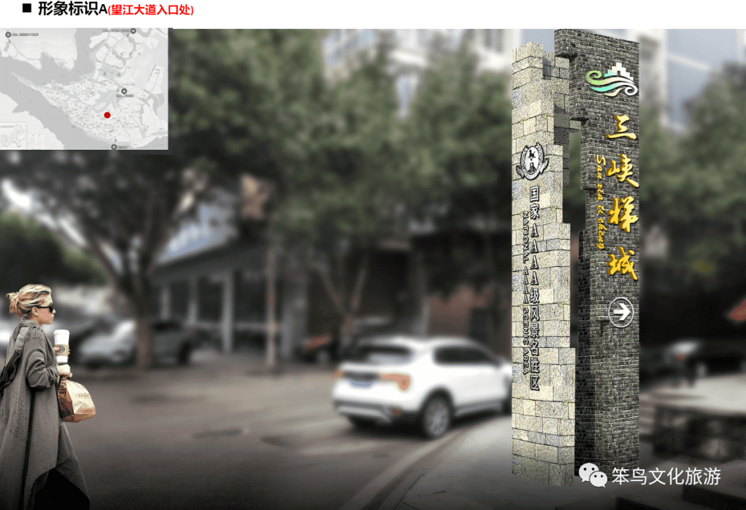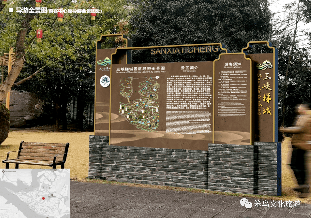 经工作人员现场踏勘发现,三峡梯城景区内标识系统不完善,入口形象缺失,4A级景区昭示性缺乏,现有导视画面磨损严重,信息指示不清晰,且风格不统一。