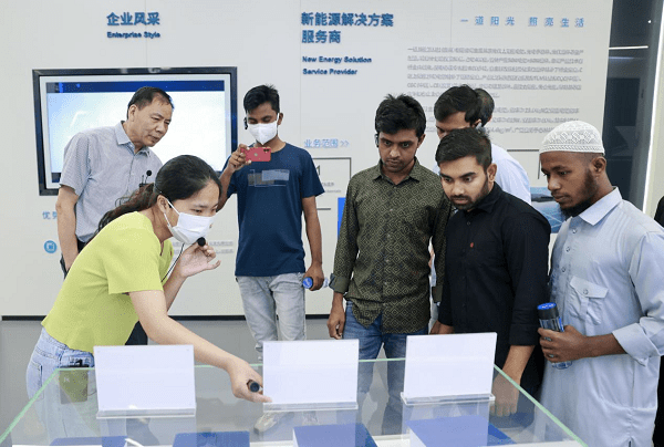 泰州学院留学生在一道新能源科技(泰州)有限公司展厅参观(央广网发 吴驰 摄)