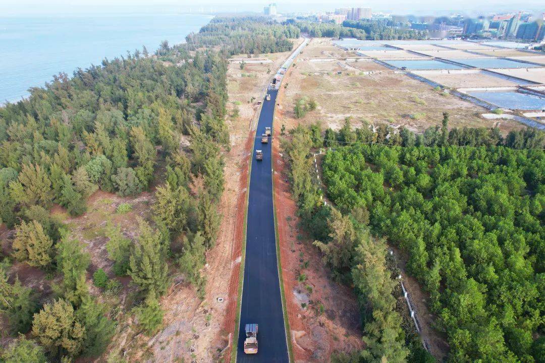 同时,项目各路段正热火朝天地进行路面沥青摊铺。截至3月29日,项目累计完成投资106.06亿元,占预算总投资156.3亿元(含环新英湾支线)的67.86%;路面下面层完成397.9公里,完成比例80%;路面上面层完成277.9公里,完成比例55.9%。