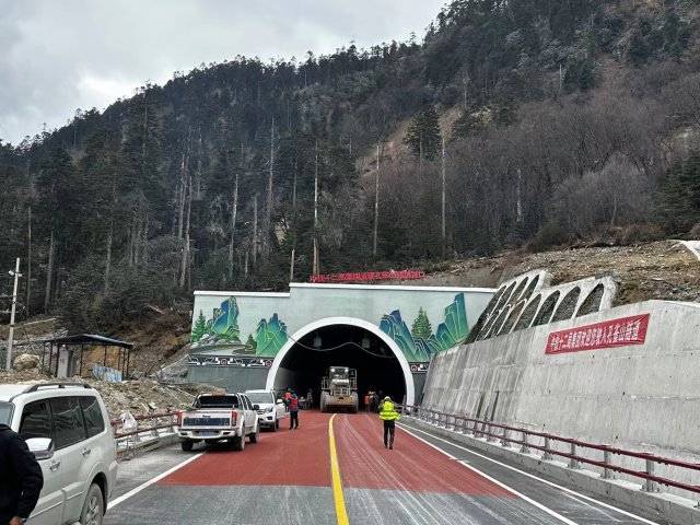 据介绍,德贡公路原全长98.2公里,孔雀山隧道建成后缩短至80.3公里,这条线路从澜沧江边翻越碧罗雪山至怒江边,自然景观秀丽多姿,但因防护设施不完善,加之翻越海拔3000多米的孔雀山垭口,常因沿线雨雪天气多,降雨、降雪量大,塌方、雪封山等自然灾害频繁,影响公路正常通行和游客观感。2019年,德贡公路提升完善养护工程开工建设,2020年3月新建孔雀山隧道,整体工程于2022年12月完工,施工单位克服了工程地形艰险、地质复杂、气候恶劣、灾害频繁等困难。