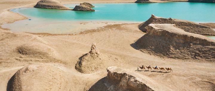 “大漠孤烟直,长河落日圆”的景象是西北沙漠风光的代表。骑着骆驼行走在黄沙漫漫的大漠之中,看落日与孤烟,绵延数十公里的沙漠好似一座座金字塔般。
