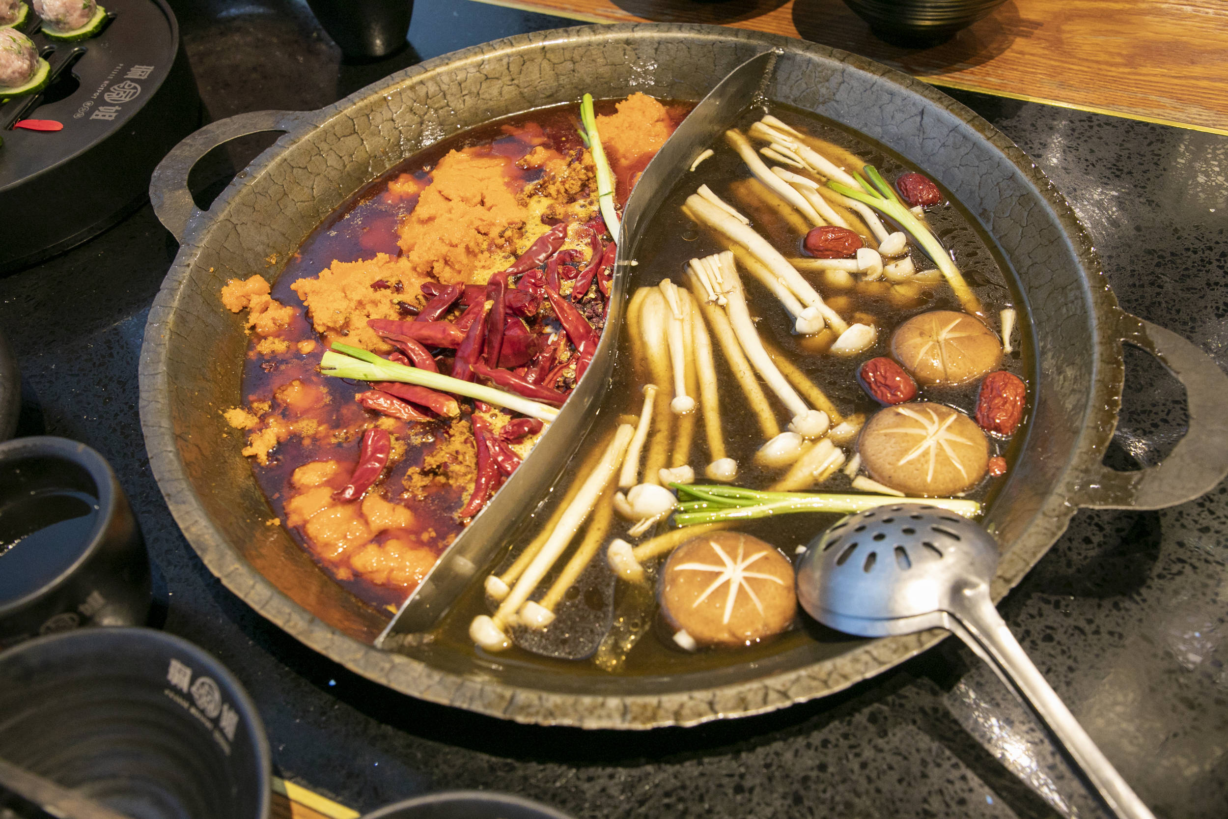 来重庆怎能不吃一顿火锅,在来福士推荐珮姐火锅,如果你不能吃辣,可以像我一样点一份鸳鸯锅。