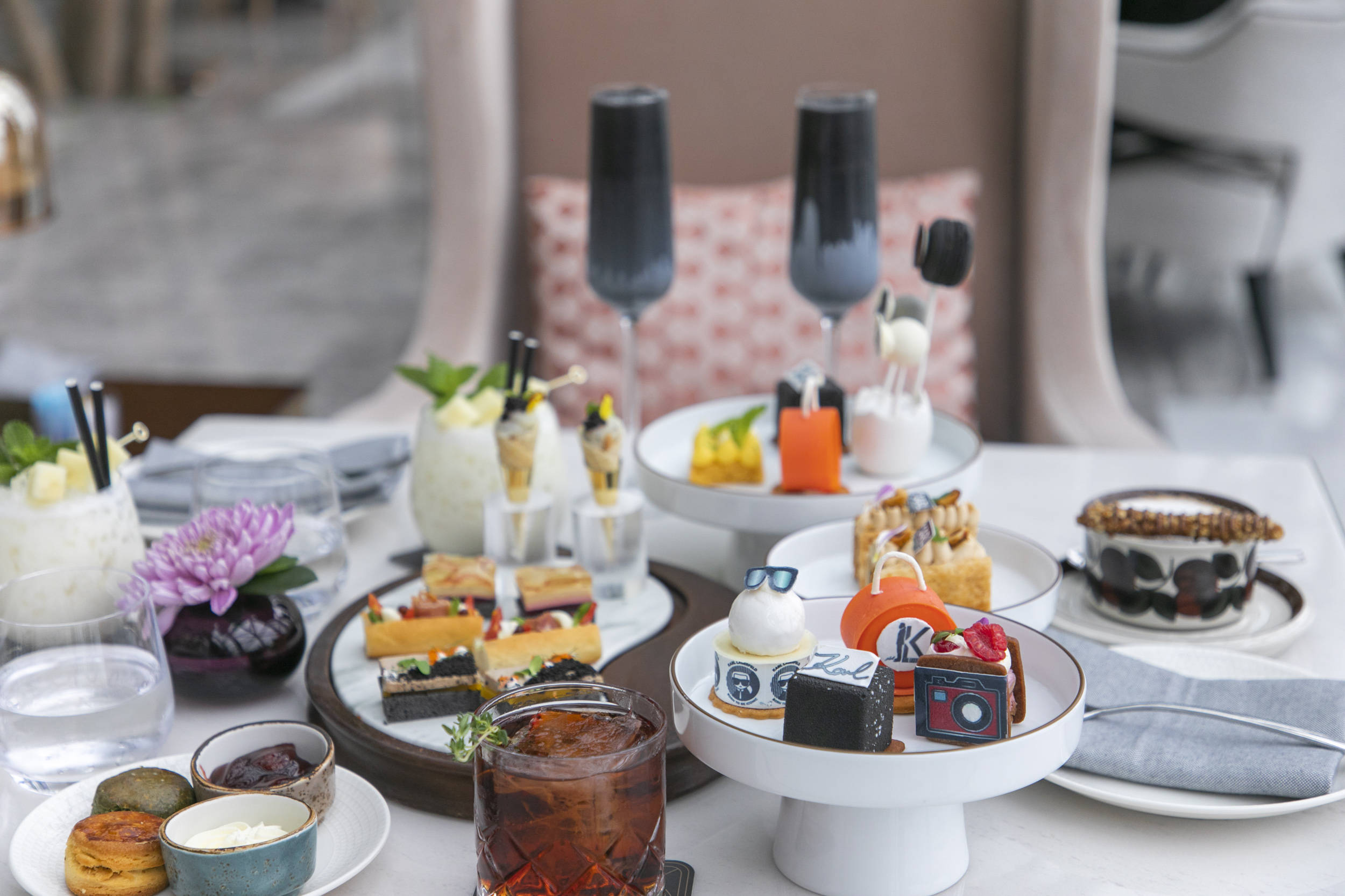 最近刚推出的下午茶,是与老佛爷联名款的玩味黑白,黑白交替,经典永恒,无论是甜点、咸点,还是特饮,细节精心雕琢,又尽显时尚奢华。