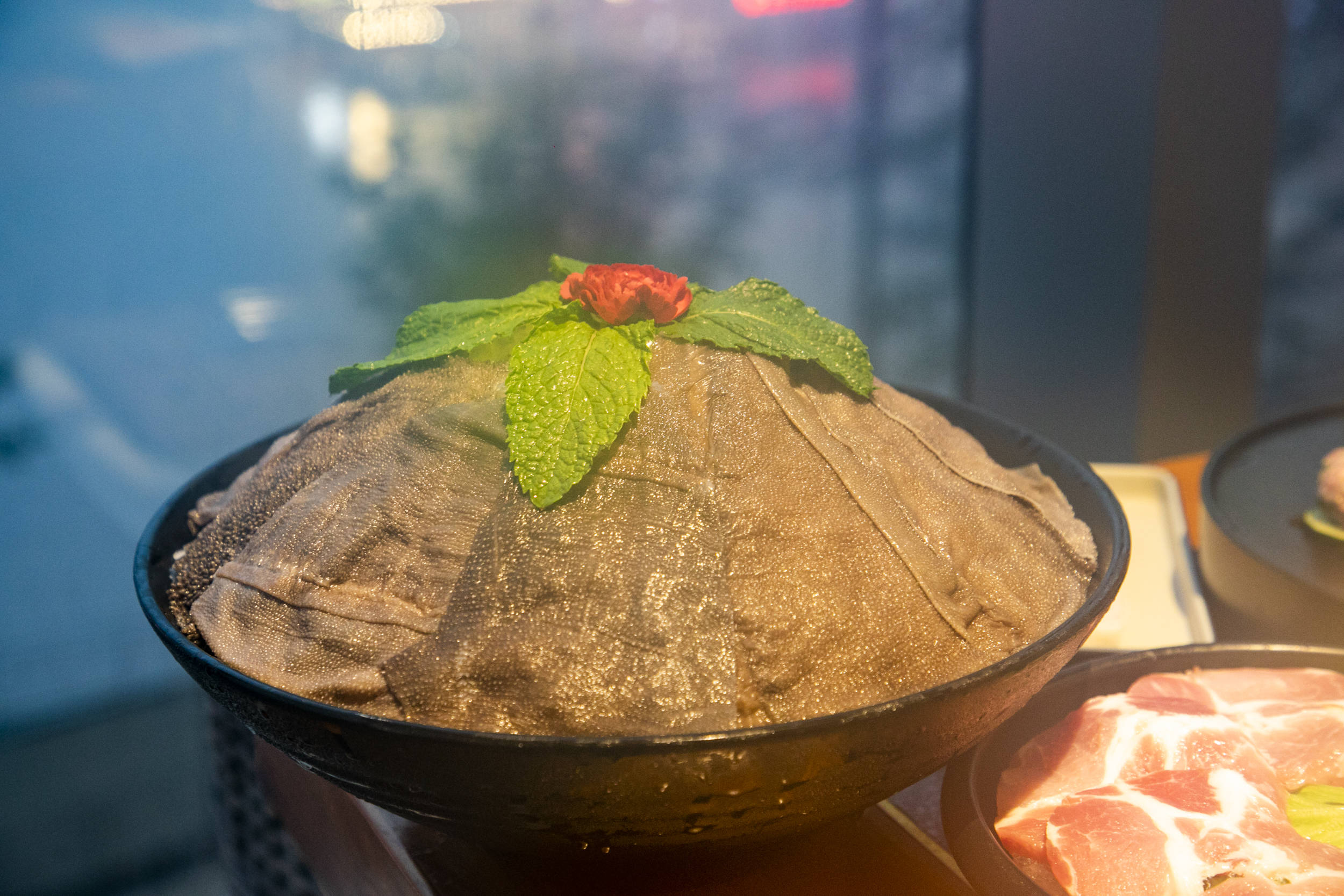 这里的菜品很新鲜,份量也很足,番茄和养生菌的清汤正合我的胃口,腰花、黄喉清脆入口,深得大家喜爱。临窗而坐,吃着火锅看着长江璀璨的夜景,真的是惬意极了。
