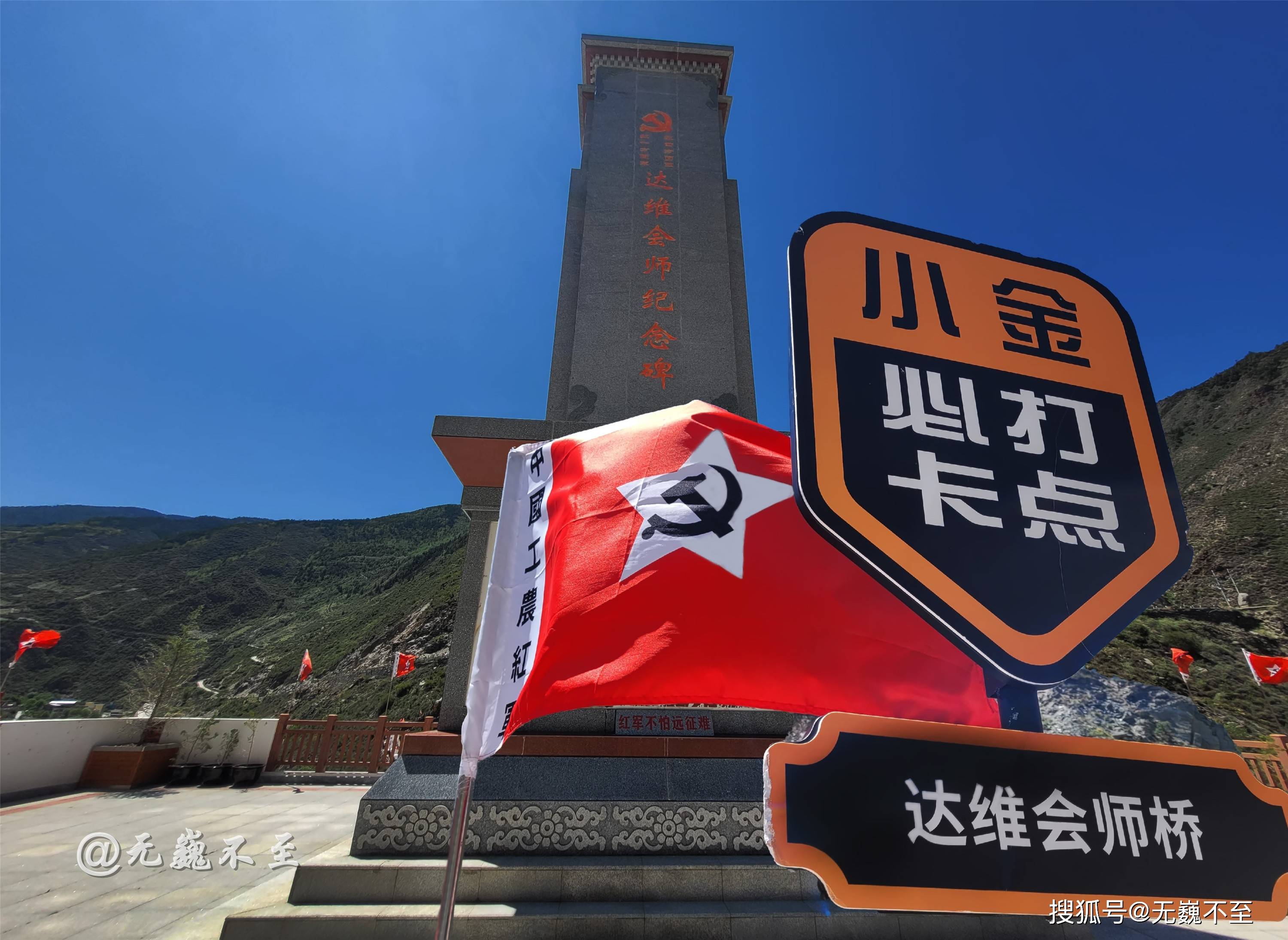 继续前行,夹金山下沃日河上,是纪念当年红军一四方面军胜利会师的达维会师桥和纪念碑。