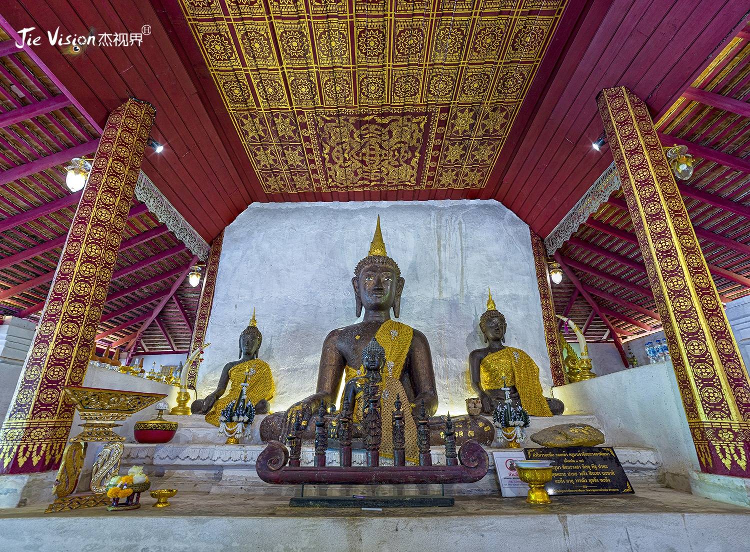 步入寺庙内的佛堂,这里有各种镶嵌宝物的佛像,每一尊佛像都显得非常庄严。在寺庙的大殿中,有一座巨大的用金和珠宝装饰的佛座,以及一座巨大的铜质佛像。铜质佛像被海量的金箔所包覆,散发着金黄而璀璨的光芒,让这里更显神圣与庄严。