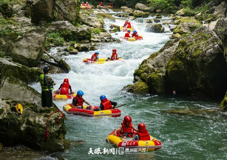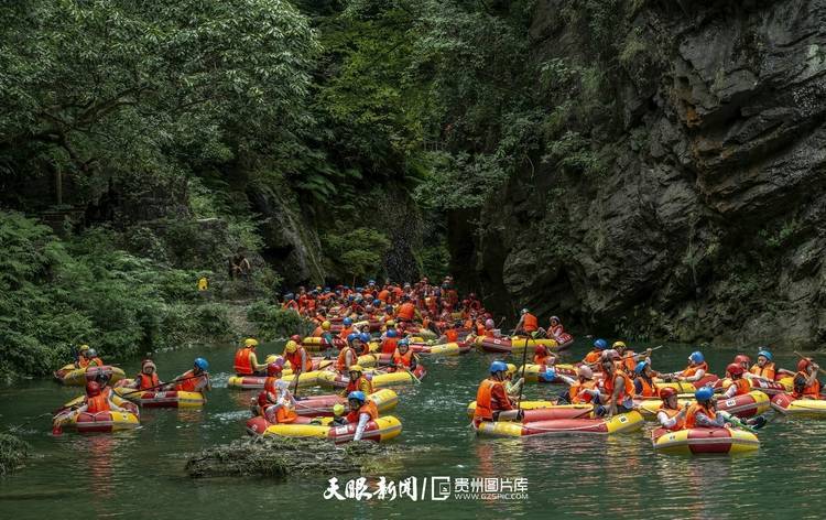 穿急流、越险滩、闯狭谷、捕激浪……拥有多变喀斯特地貌、丰富水资源、凉爽气温,注定了夏日的贵州是一个适合玩水的地方,而玩水最尽兴的方法,那你一定得试试漂流。