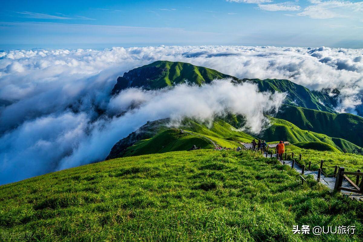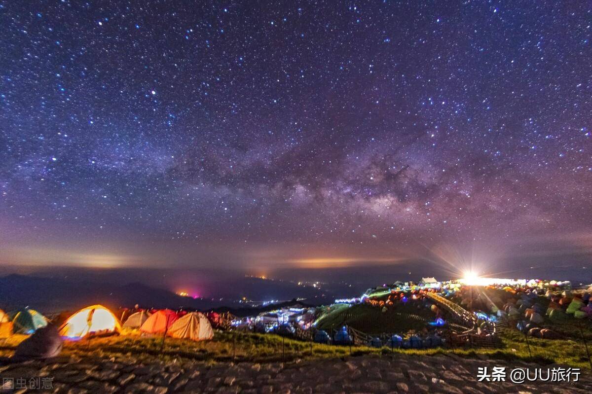 云海缥缈,星辰涌动,绿草及膝。日月星辰在此轮转,山顶的星空引人遐想。武功山是无数夏季露营爱好者追捧的胜地。