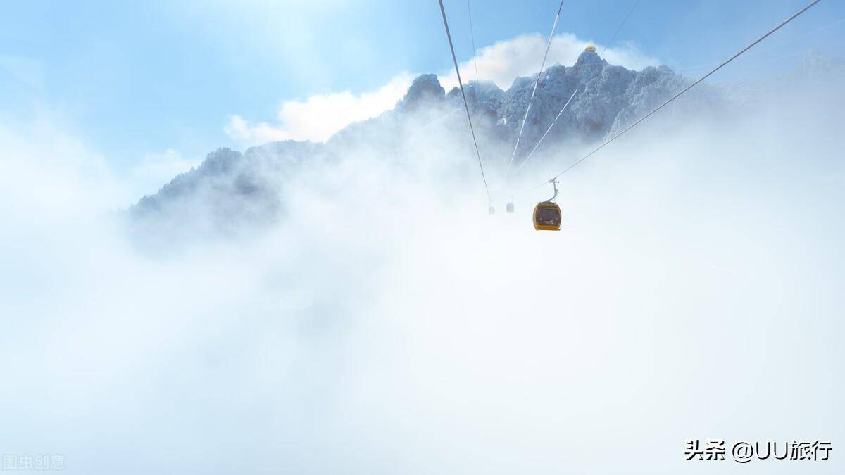 可以根据自己的时间安排,在民宿休息之后第二天一早登山。徒步上山的话需要不停攀登5个小时,走景区西门。乘坐索道走景区东门,乘坐20分钟的摆渡车加30分钟左右的索道,就能到达山上的索道站。相比徒步攀登,在山头间跨越的索道更有腾云驾雾的感觉,上山时间节省3小时以上。