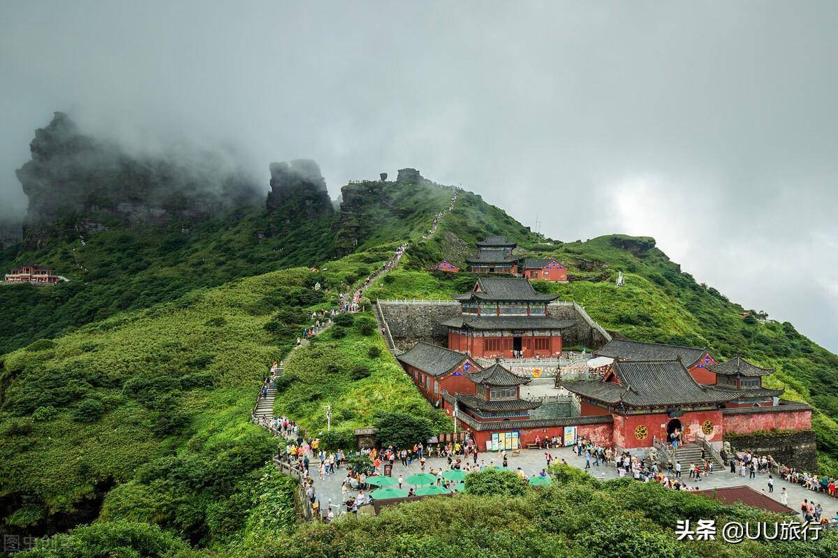 虽然不是贵州第一高峰,但也是云贵高原向湘西丘陵过渡的第一高峰,武陵山脉的主峰之一。山体的鬼斧神工精巧绝伦,像是被精心雕琢过一样,红云金顶像是一颗柱子矗立山巅。从山顶到山脚的垂直落差近2000米,登山难度不算太高。